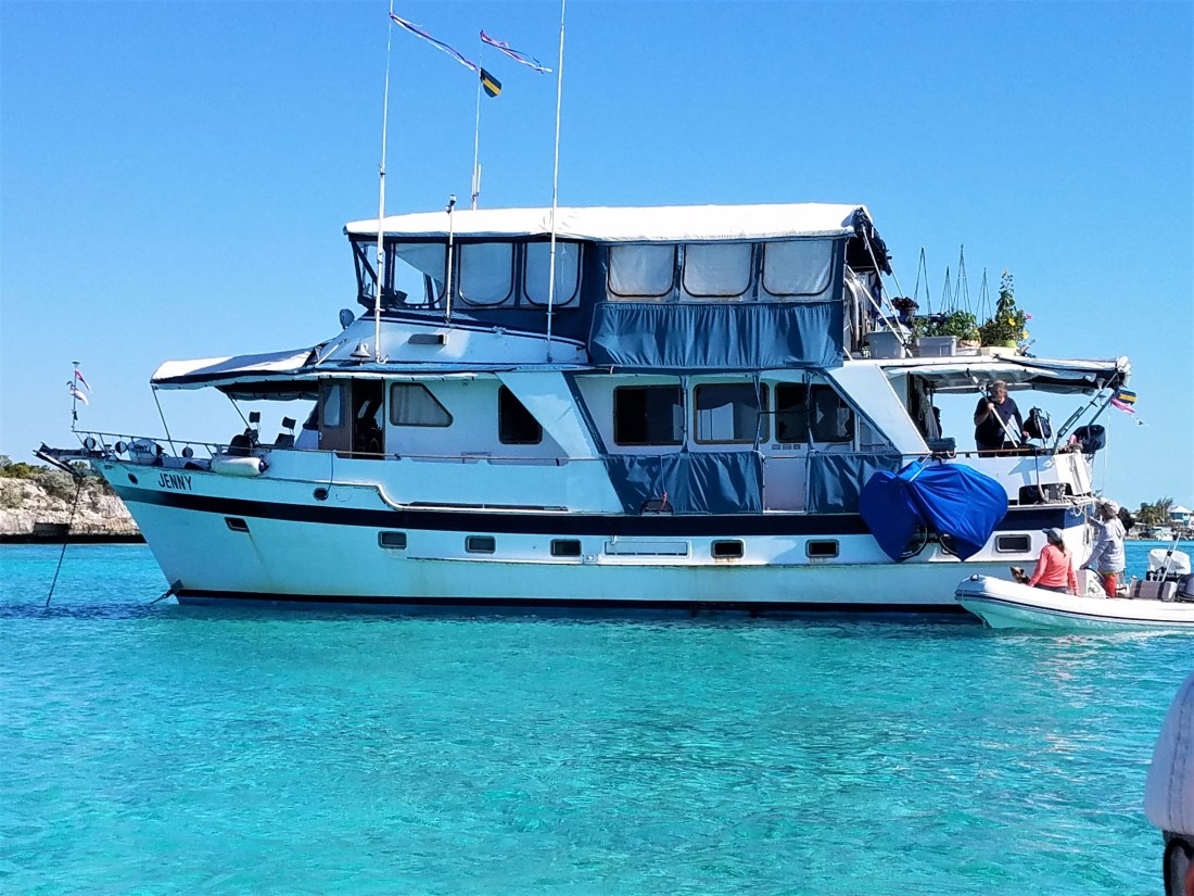 Sunday was a down day. My crew took advantage of it to get the scuba tanks filled, take me in to the fuel dock to get my tanks filled and take a walk to the Coast Guard Station to get our Despatcho for the next port. The Captain came back a little frustrated when despite completing all the forms (in triplicate) they would not give him the formal Despatcho until early Tuesday morning when we actually left the docks. No big deal but it put us leaving a few hours later than preferred. We were off to Isla Catalina where we arrived late afternoon and the crew decided to stay on board and enjoy some Pawsitive Rum Punch as evening was approaching . Early the next morning we headed off to Isla Saona and were able to finally SAIL THE ENTIRE WAY WITHOUT THE ENGINE. The Island was almost due South and made for a great beam reach. Upon arrival, the anchor went down and we found ourselves all alone right off a fantastic Palm Tree lined, white sand beach and settled in for the evening. By 1030 the next morning we were no longer alone. It was the “Invasion of the Party Cats”. No less than 30 large catamarans along with every type of motor boat imaginable came sailing in from the mainland all packed to the brim with tourists intent on eating, drinking and getting maximum sun exposure. The beach party lasted the day but by 1600, once again, we were alone. We spent a few days there enjoying the sites and sounds. Our next stop is Puerto Rico and US soil again.